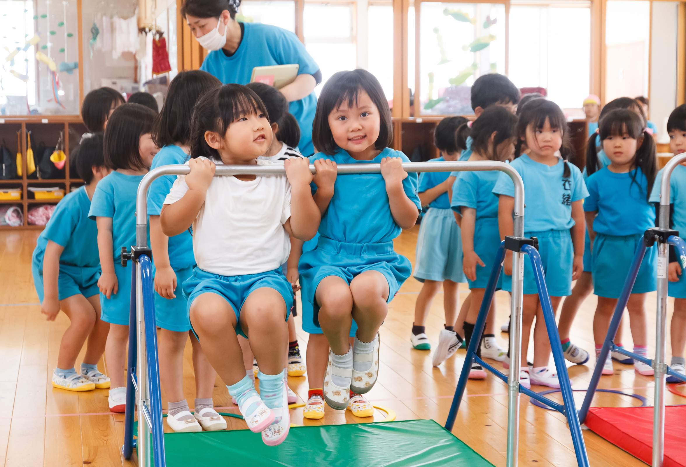 鳳鳴乃里の一日がスタートお車や送迎バスなどで、みんな元気よく登園登園後、園庭で走りまわったり、遊具を使ってのびのびと活発にお遊び